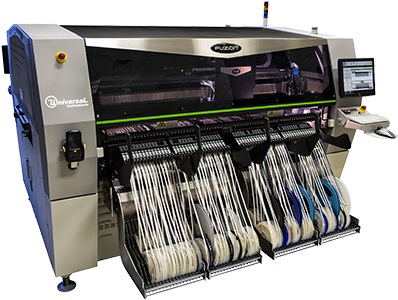Further investment in SMT placement with the Universal Fusion 37. The platform offers the highest level of accuracy and flexibility to enable placement at high speed of components from 01005 up to 150mm2